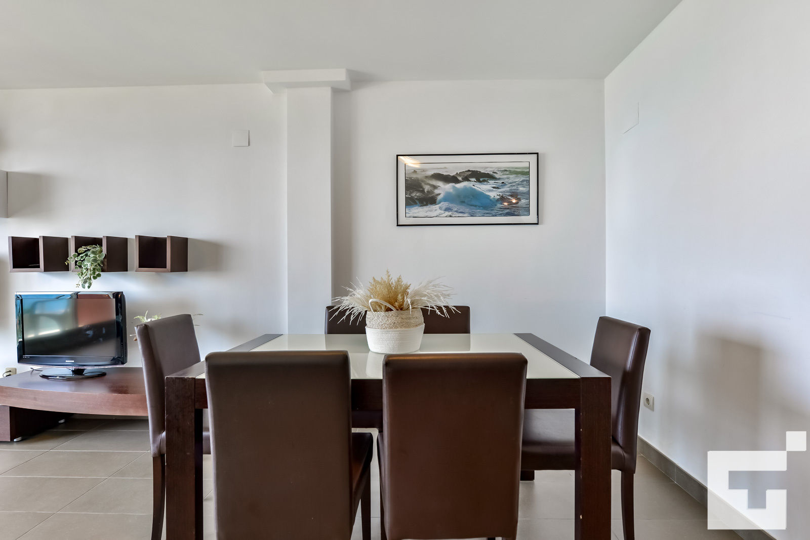 📺 Красивая гостиная-столовая с телевизором и выходом на террасу.