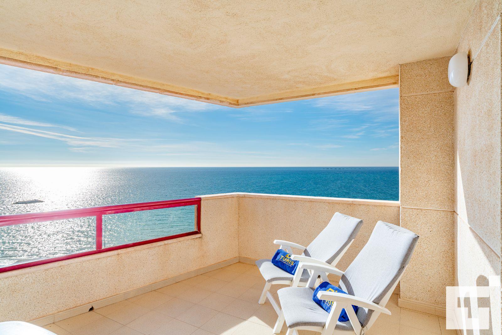 🪟 Amplia terraza amueblada con vistas al mar.