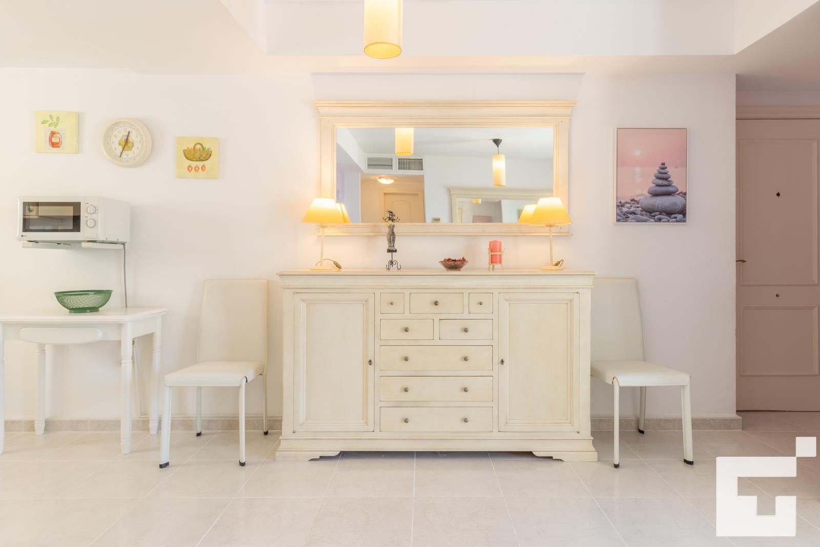 🍳 Cocina abierta al salón, equipada con placa vitrocerámica, horno, microondas y frigorífico.