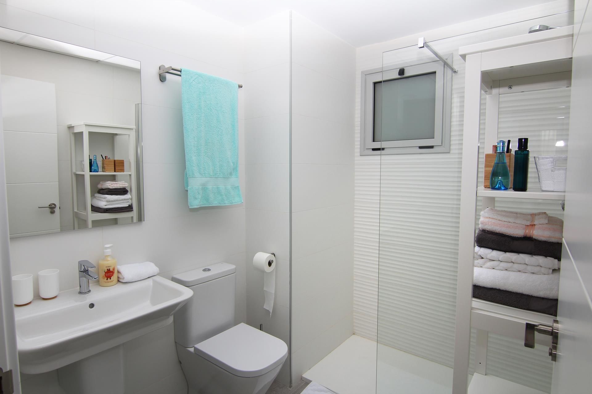 • baño con lavabo individual, ducha, inodoro y secador de pelo
