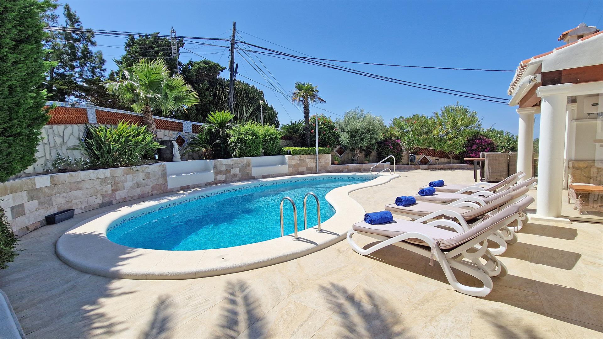 Hermosa y alegre villa con piscina privada en Denia, Costa Blanca, España para 8 personas. La casa se encuentra en una zona residencial y montañosa, a 4 km de la playa de La Marineta.