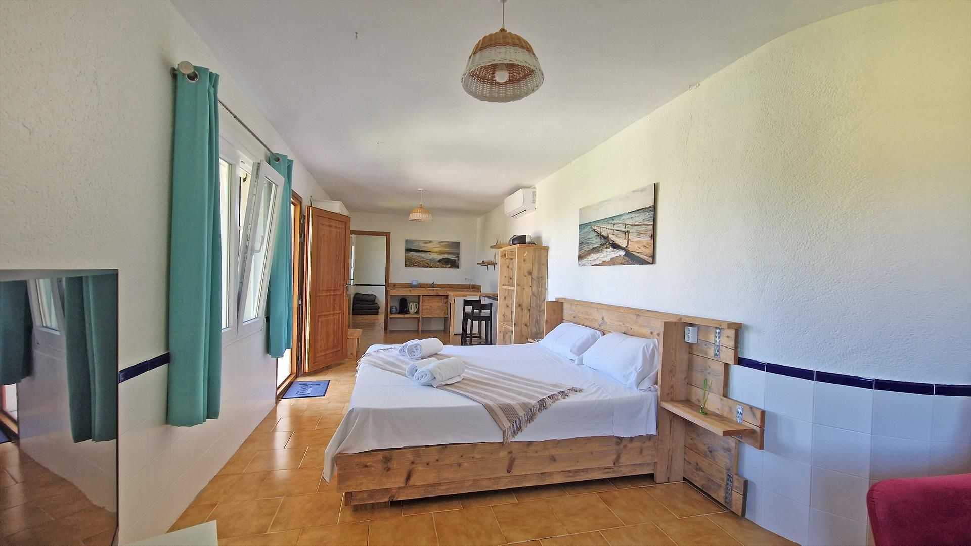 • dormitorio con aire acondicionado y cama king-size (190 por 180 cm) y baño en suite