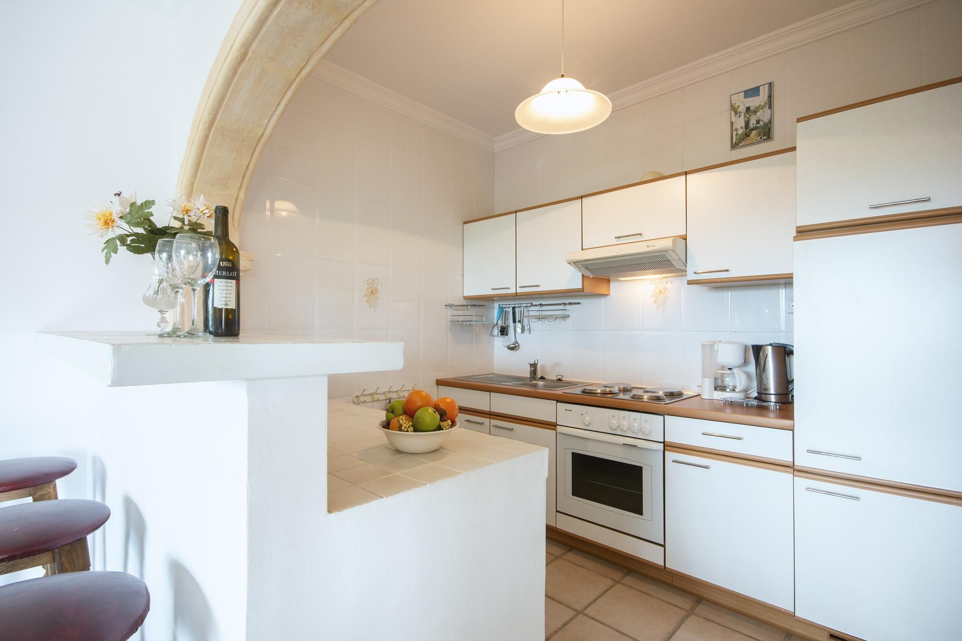 • cocina con placa eléctrica, horno eléctrico, microondas, lavavajillas, frigorífico-congelador, cafetera, hervidor eléctrico, batidora, tostadora y exprimidor