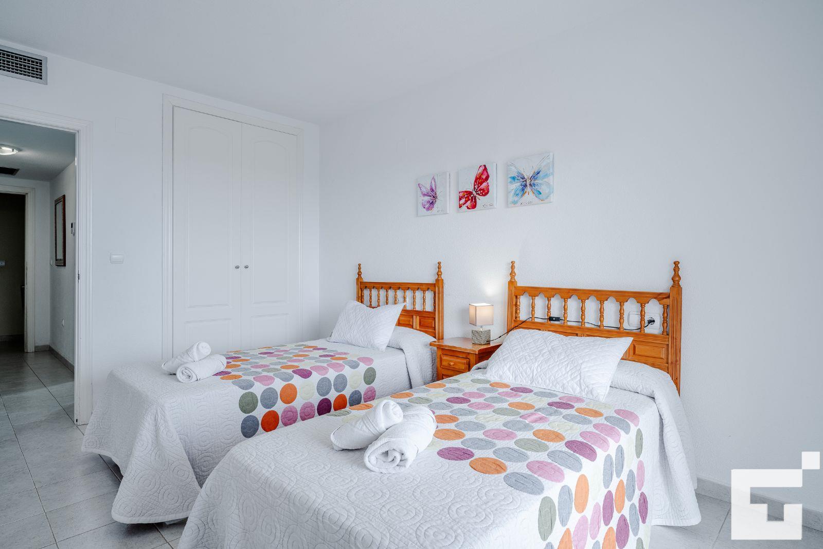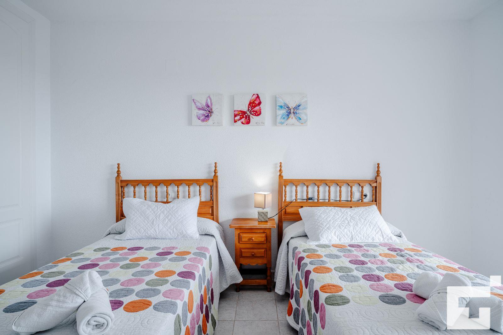 🛏️ 1 Schlafzimmer mit zwei Einzelbetten.