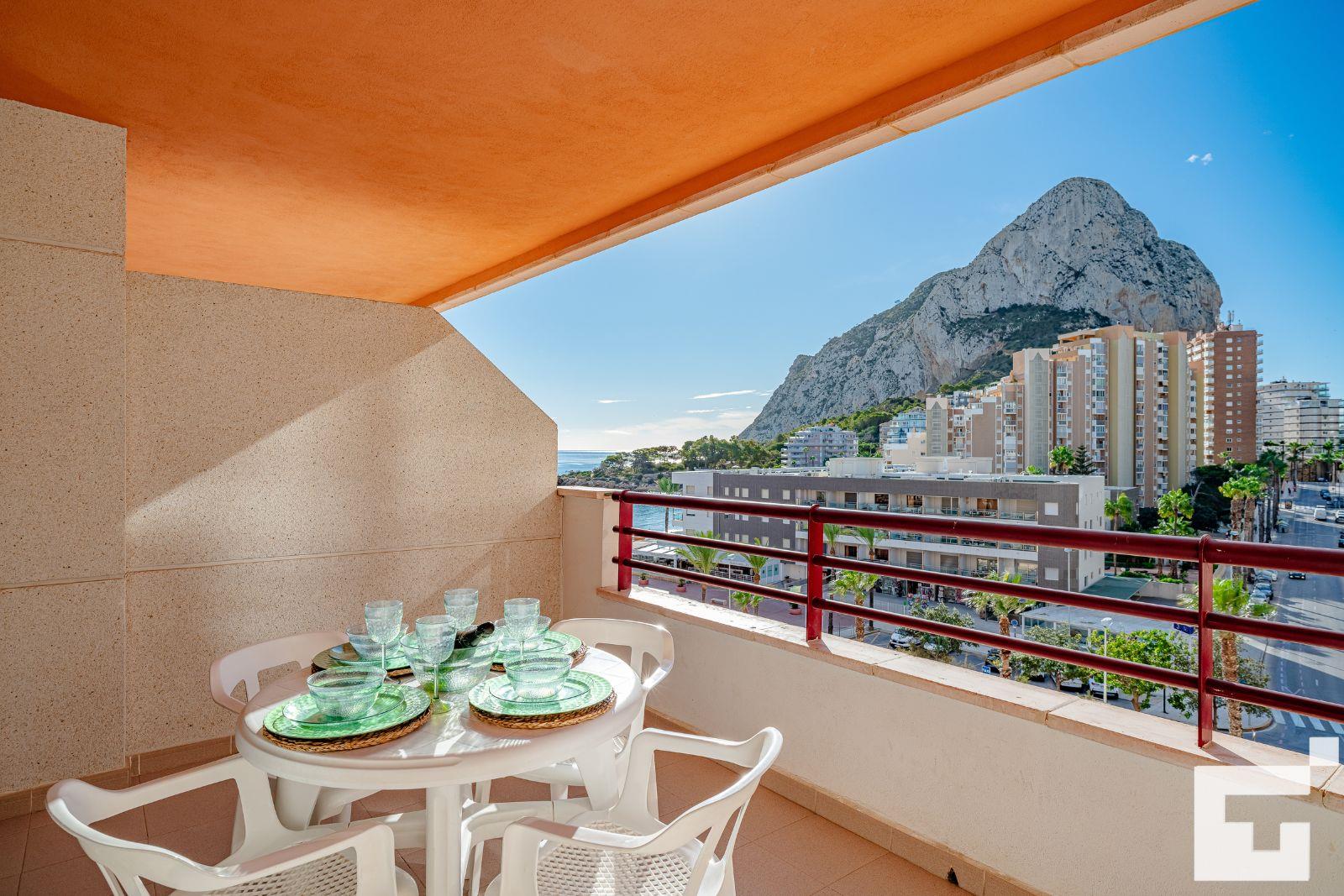 Von der großen, möblierten Terrasse aus können Sie einen atemberaubenden Panoramablick auf die Bucht von Calpe und den majestätischen Peñón de Ifach genießen. Entspannen Sie sich bei dem Geräusch der Wellen, während Sie ein Getränk oder eine Mahlzeit im Freien genießen.