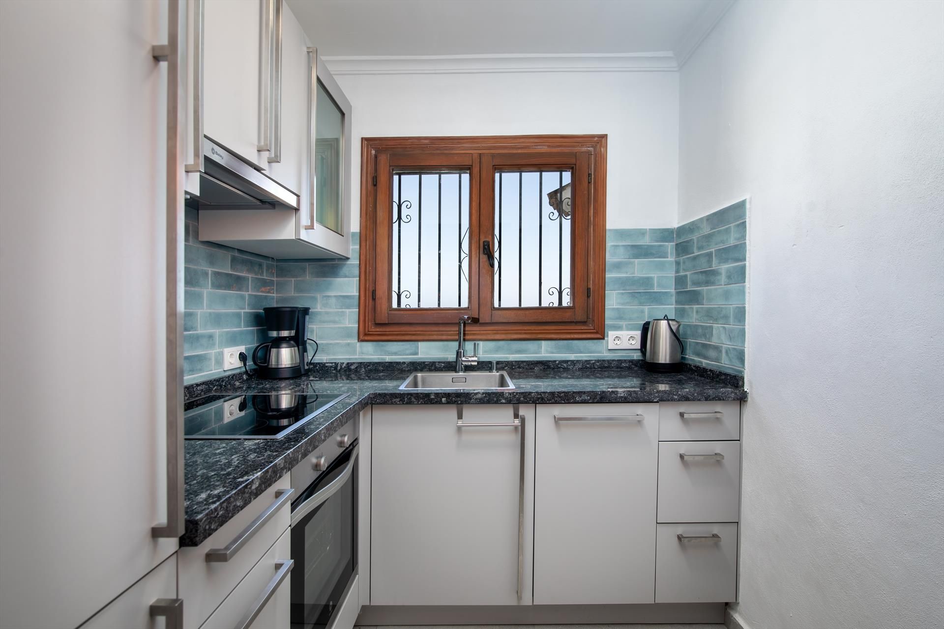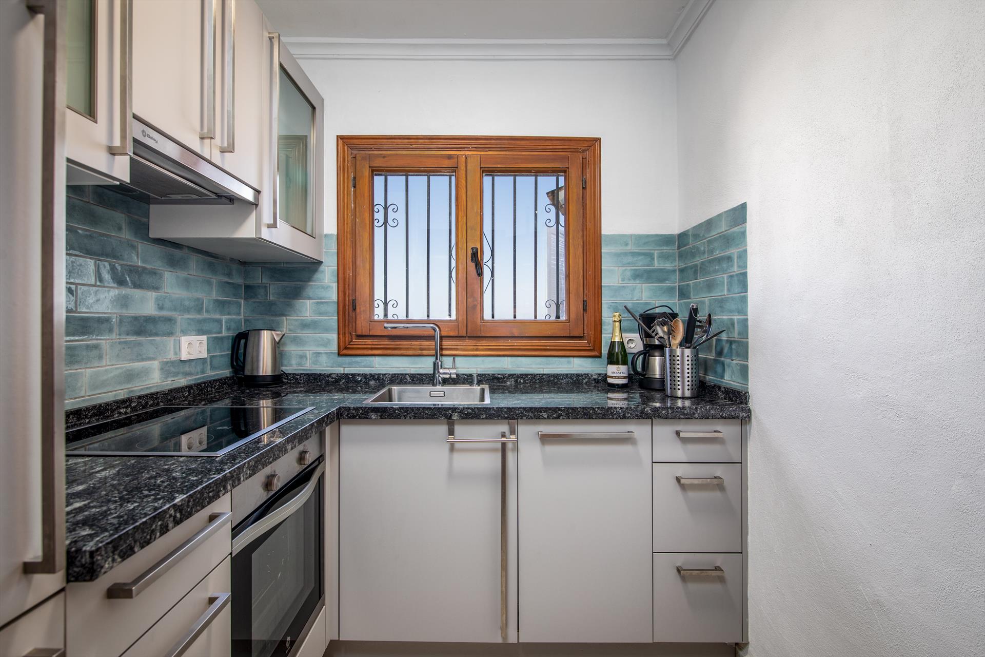 Innenausttatung: Kühlschrank, Herd und Backofen/oder Elektrogrill, Kaffeemaschine, Toaster, Wasserkocher, Bügeleisen und Bügelbrett, Pürierstab.