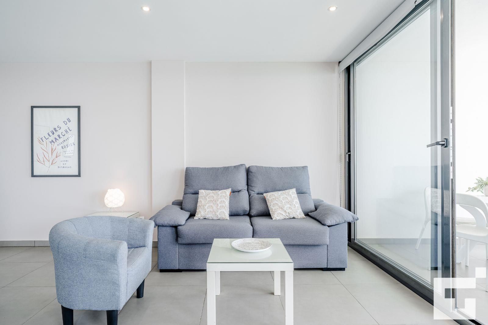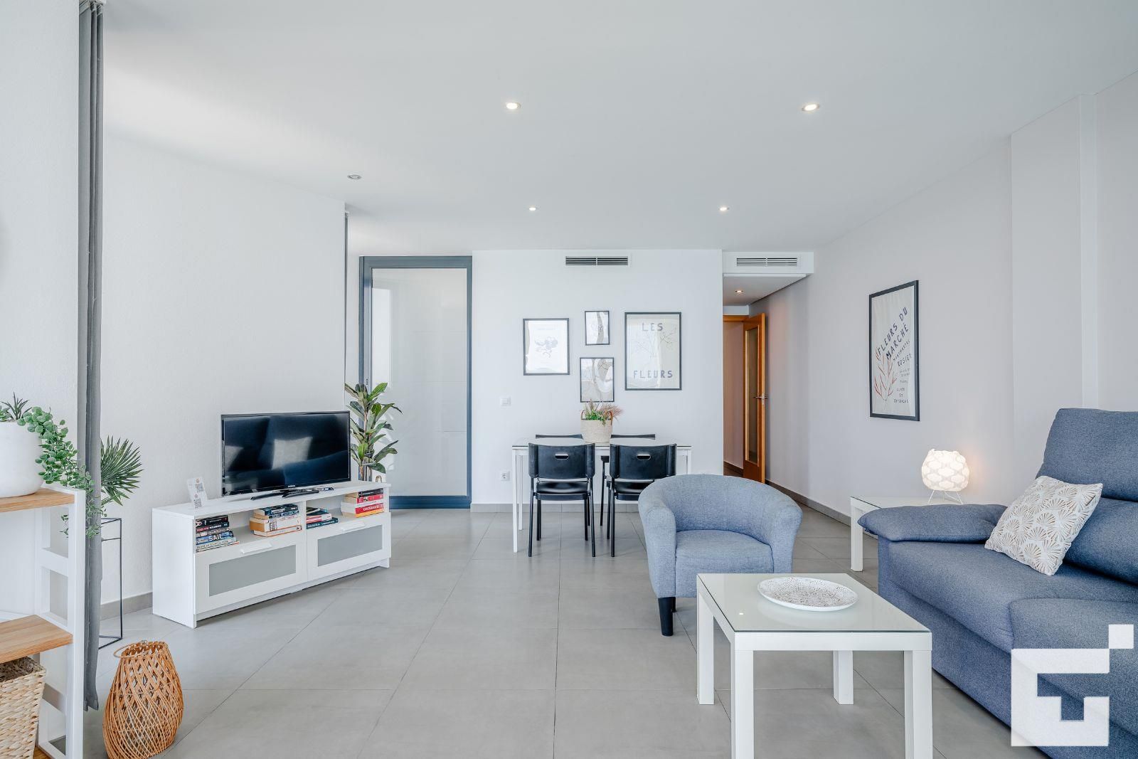 Enjoy an unforgettable vacation in this spacious and bright apartment located right on the beautiful Cantal Roig Beach in Calpe (Costa Blanca). Accommodating up to 4 guests and featuring a modern design, this property offers stunning views of the sea, the Peñón de Ifach, and the bay, which you can admire from its private terrace.