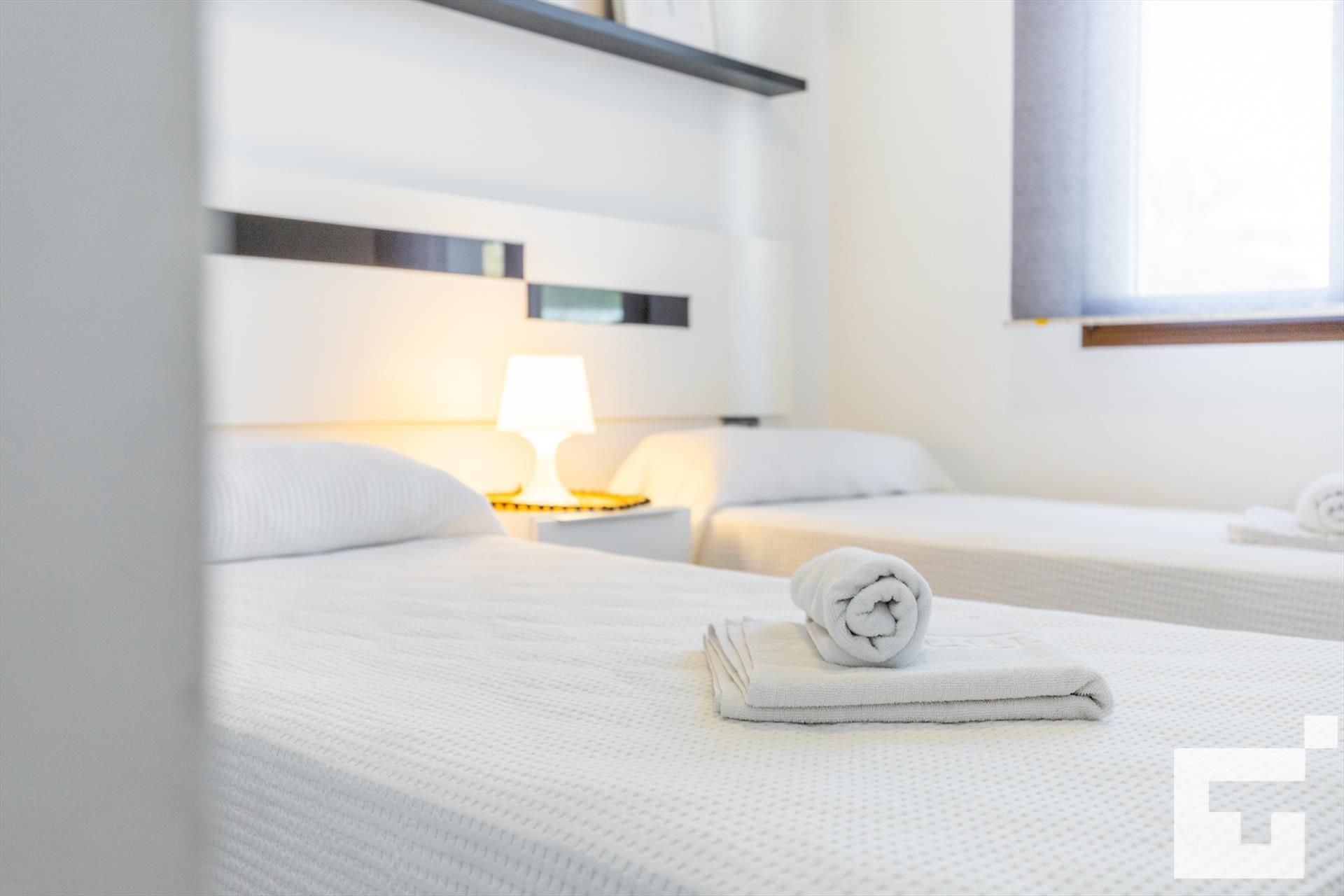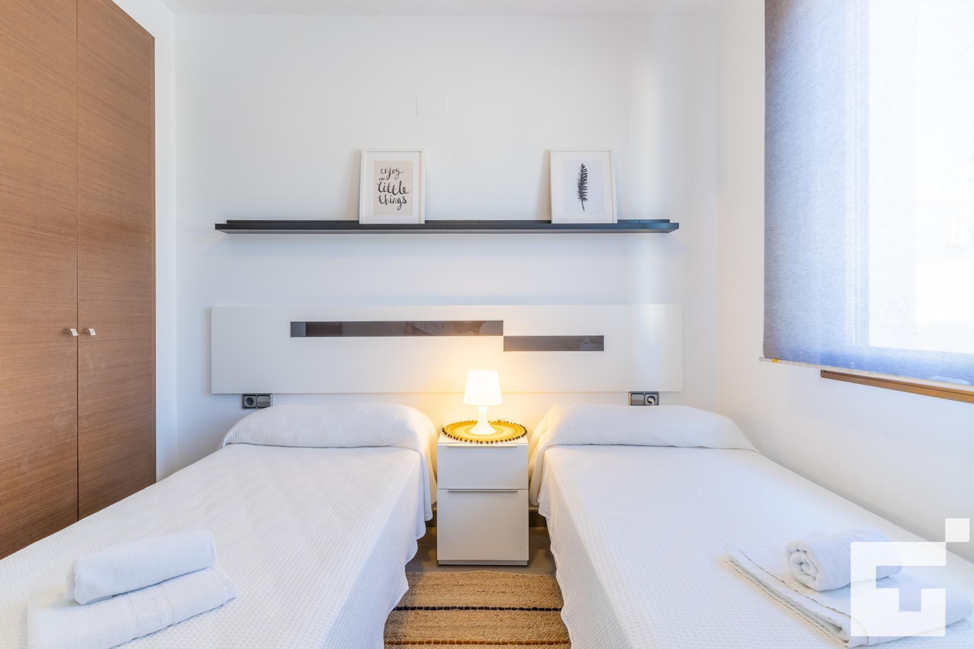 - 1 bedroom with two single beds.