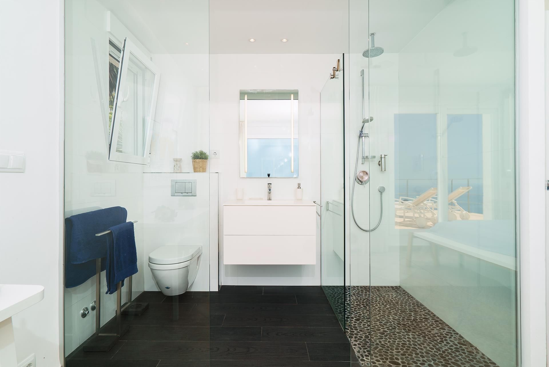 The luxury villa has 3 bedrooms, 3 bathrooms and 1 guest toilet, spread over 3 levels. The accommodation offers a lot of privacy, a beautiful pool, wonderful views of the bay and the sea and beautiful views of the mountains. Its comfort and the vicinity of the beach make this an ideal luxury villa to spend your holidays in Spain with family or friends.