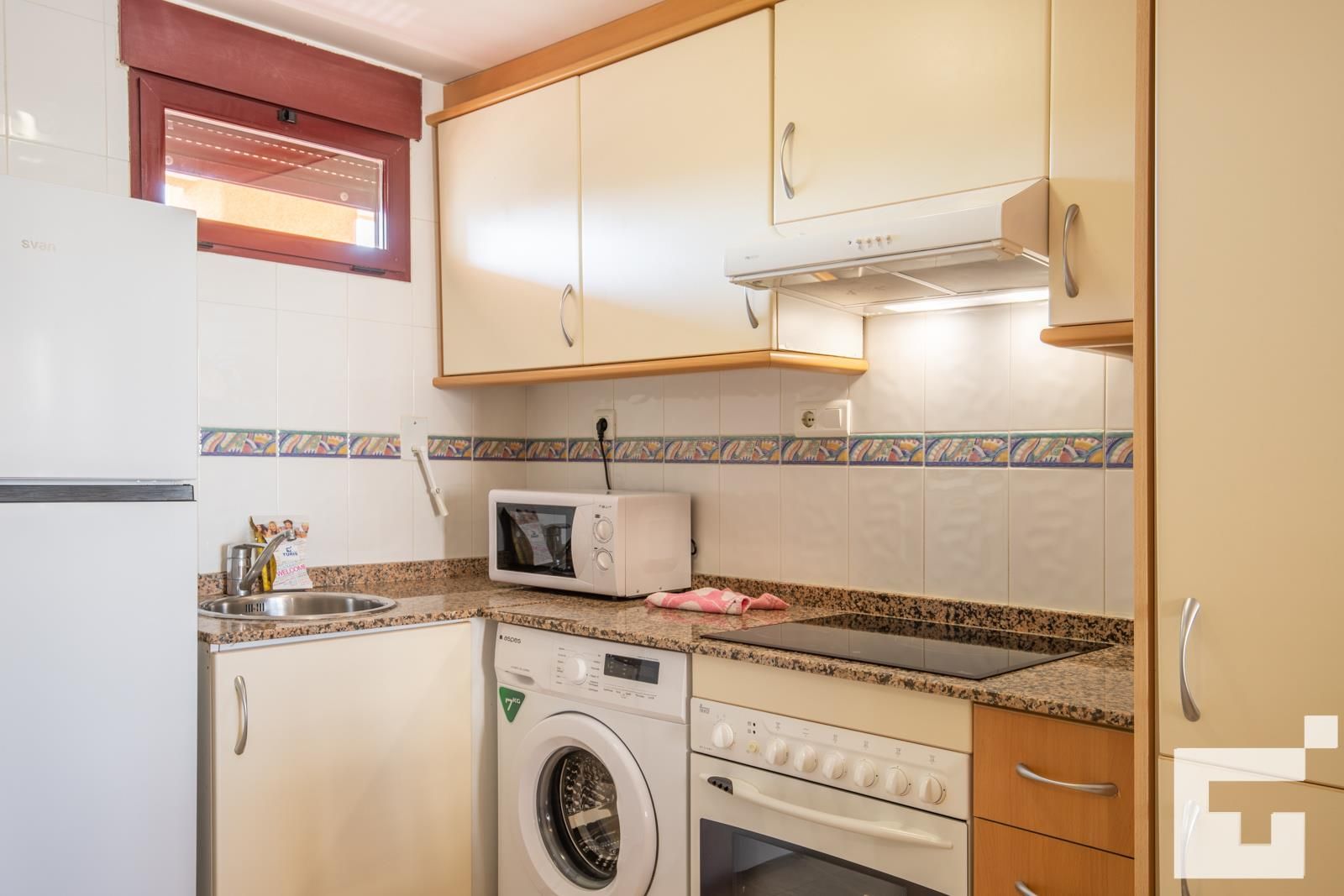 🍳 Keuken uitgerust met keramische kookplaat, oven, magnetron, koelkast en wasmachine.