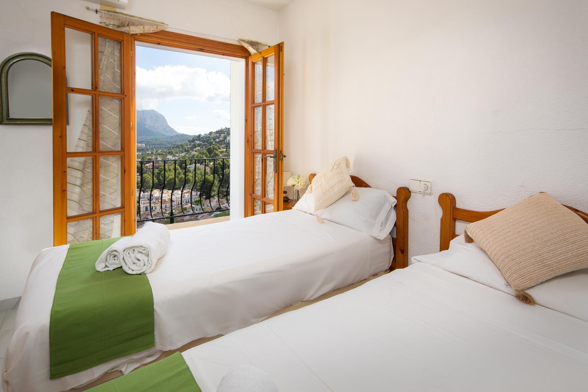 De villa heeft 2 slaapkamers, 1 badkamer en 1 gastentoilet, verdeeld over 3 niveaus. De accommodatie biedt privacy, een tuin met bomen, prachtige uitzichten op de golfbaan, de zee, de vallei en de bergen en schitterende vergezichten over het platteland en de stad. De nabijheid van winkelmogelijkheden, sportieve activiteiten en uitgaansgelegenheden maakt dit een geweldige villa om uw vakantie in Spanje met familie of vrienden door te brengen.